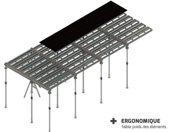 Avec des cadres de 1m2 ou 2m2 (1x1 ou 1x2) et une panoplie d'accessoires permettant de travailler en hauteur et en toute sécurité.